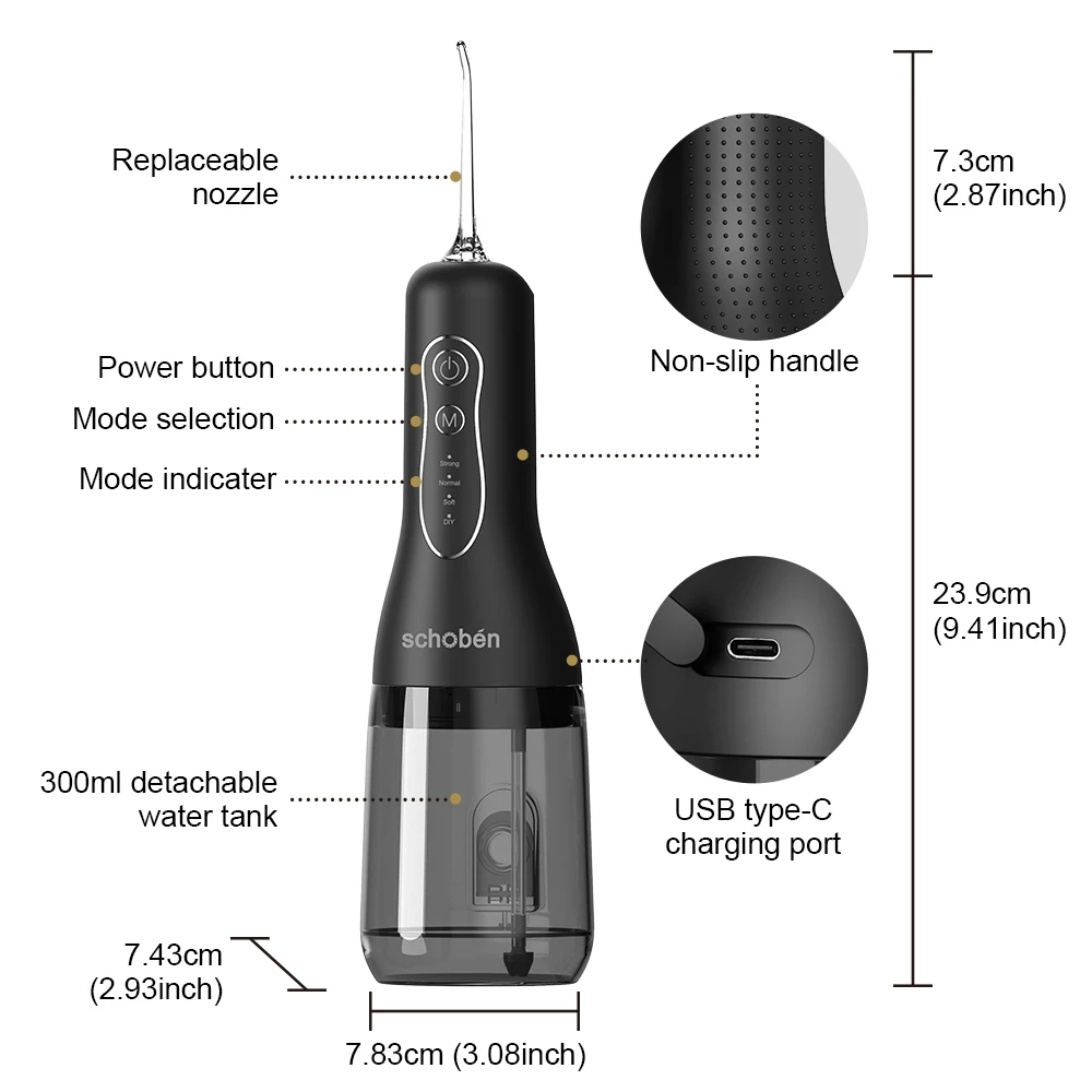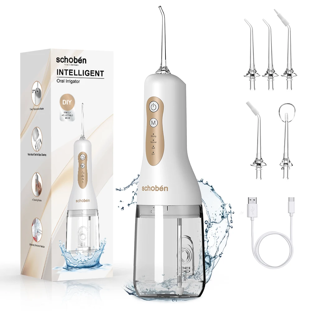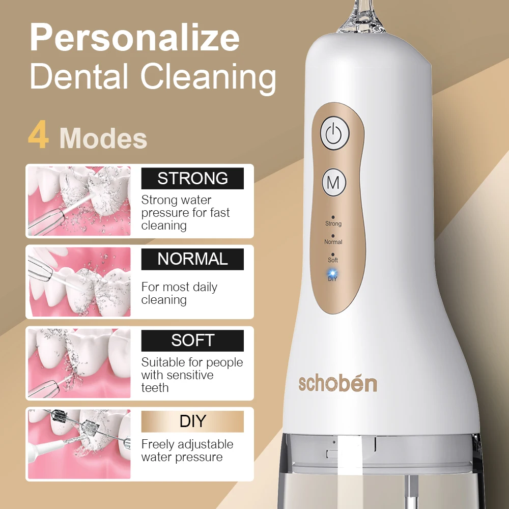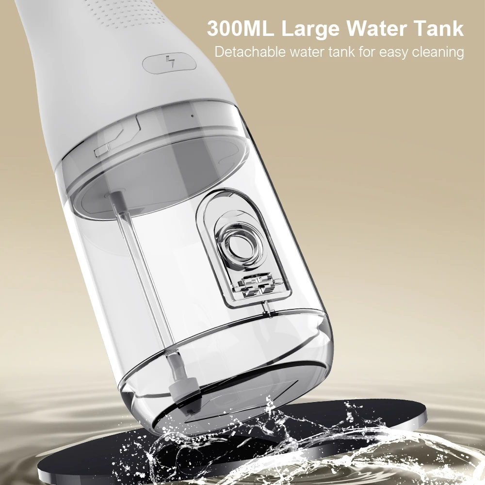 4-in-1 Water Flosser, Cordless Portable 300ML Large Tank, Home & Travel Water Flosser and Dental Floss Cleaner