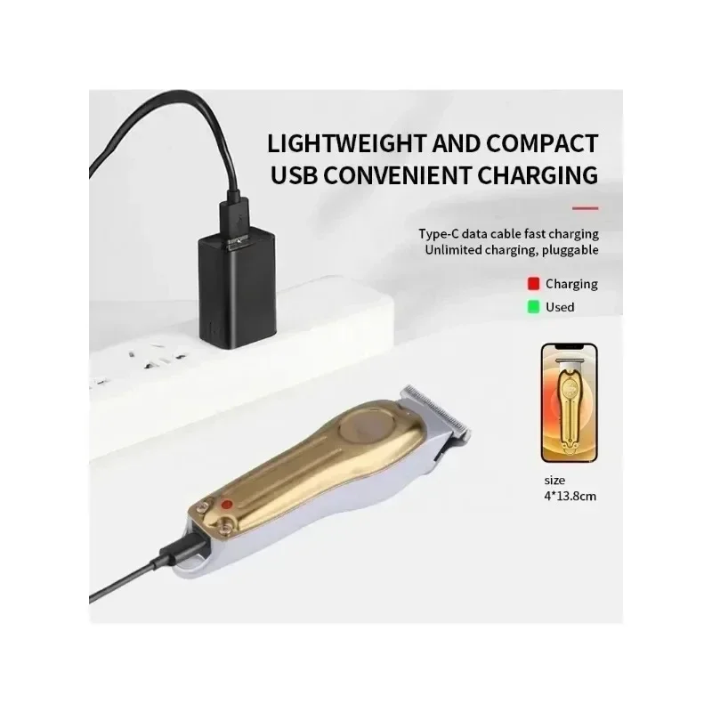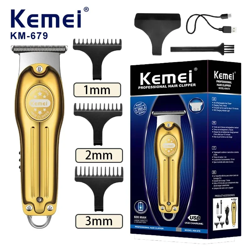 Kemei KM-679 Wholesale Electric Gold Silver Color Hair Trimmer USB Charging Mini LCD Light Carving Scissors Hair Clipper for Men