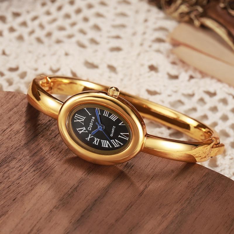 Light-luxury Niche Oval Womens Watch With A Rose Gold Diamond Bezel