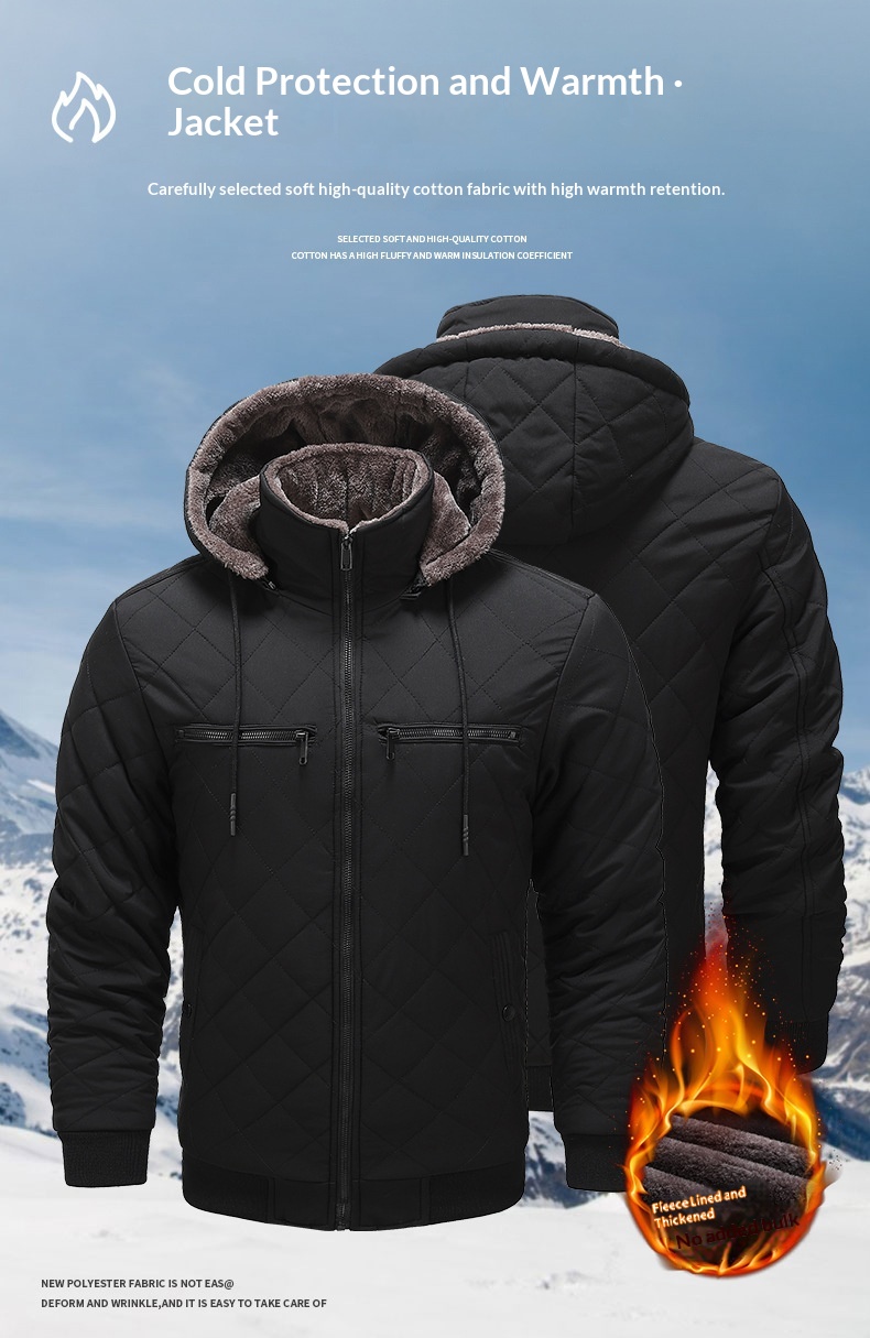 Mens Winter Fleece Lined Jacket Warm Insulated Cotton Coat