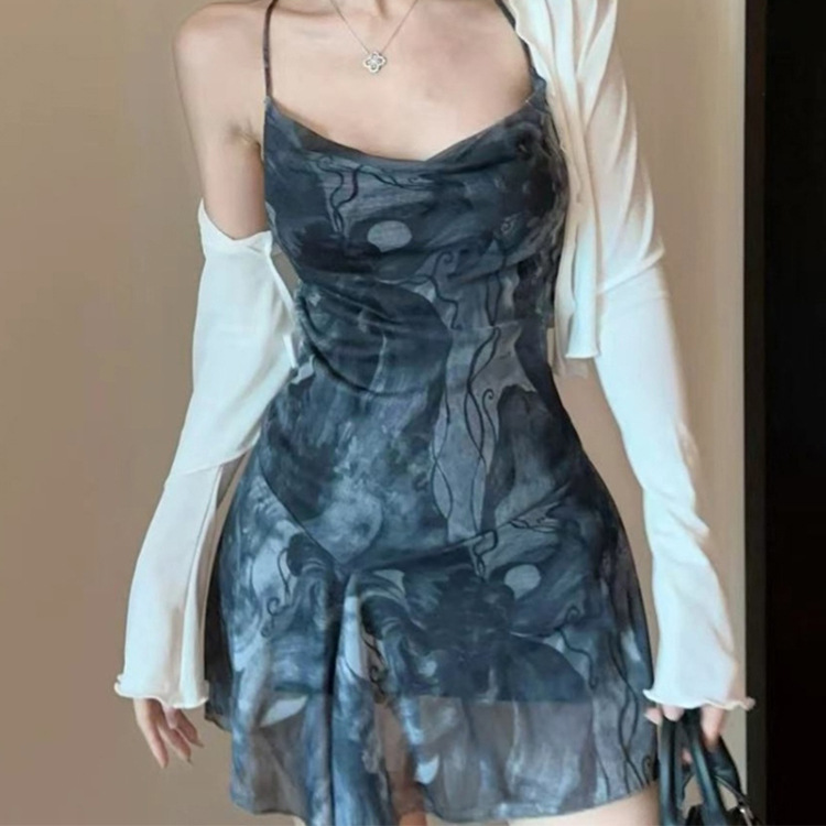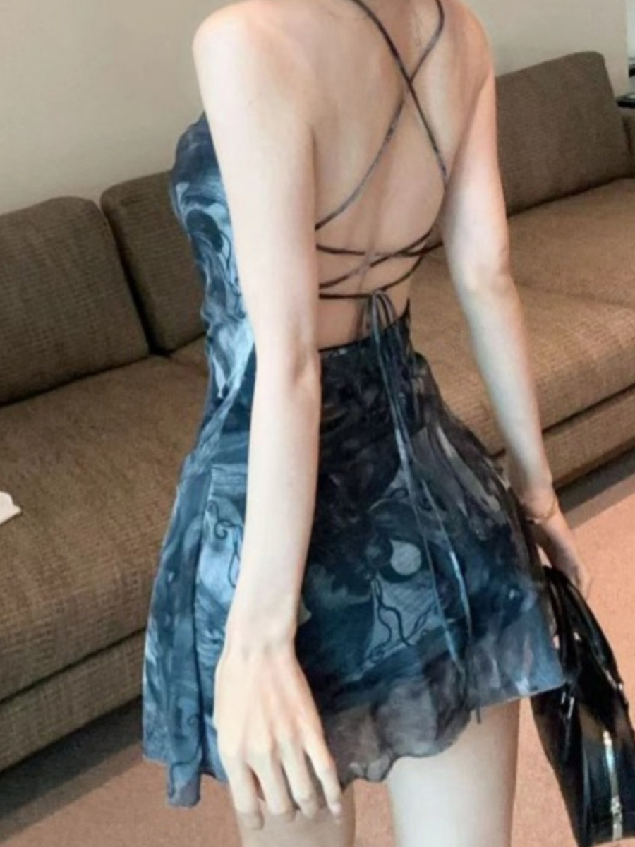 Stylish Womens Backless Asymmetrical Printed Slip Dress