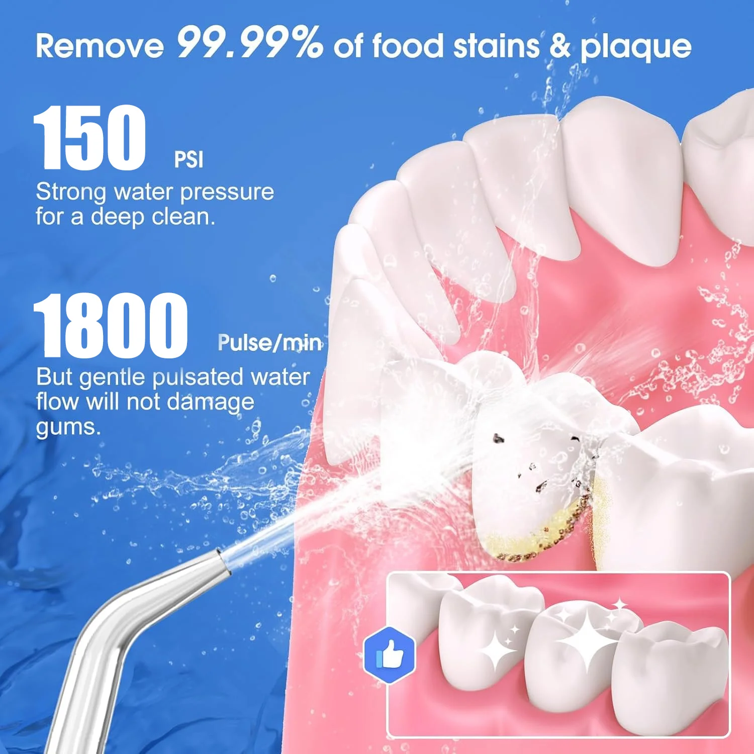 【360°ROTATABLE NOZZLE DESIGN】The 360°rotatable nozzle allows you to easily clean areas that are difficult to reach and prevents tooth decay, dental teeth problem, Teeth stone, gingival bleeding and dental hypersensitivity.