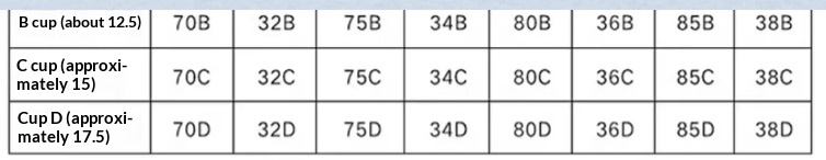Sizes: 34/75 BCD, 36/80 BCD, 38/85 BCD, 40/90 BCD, 42/95 BCD