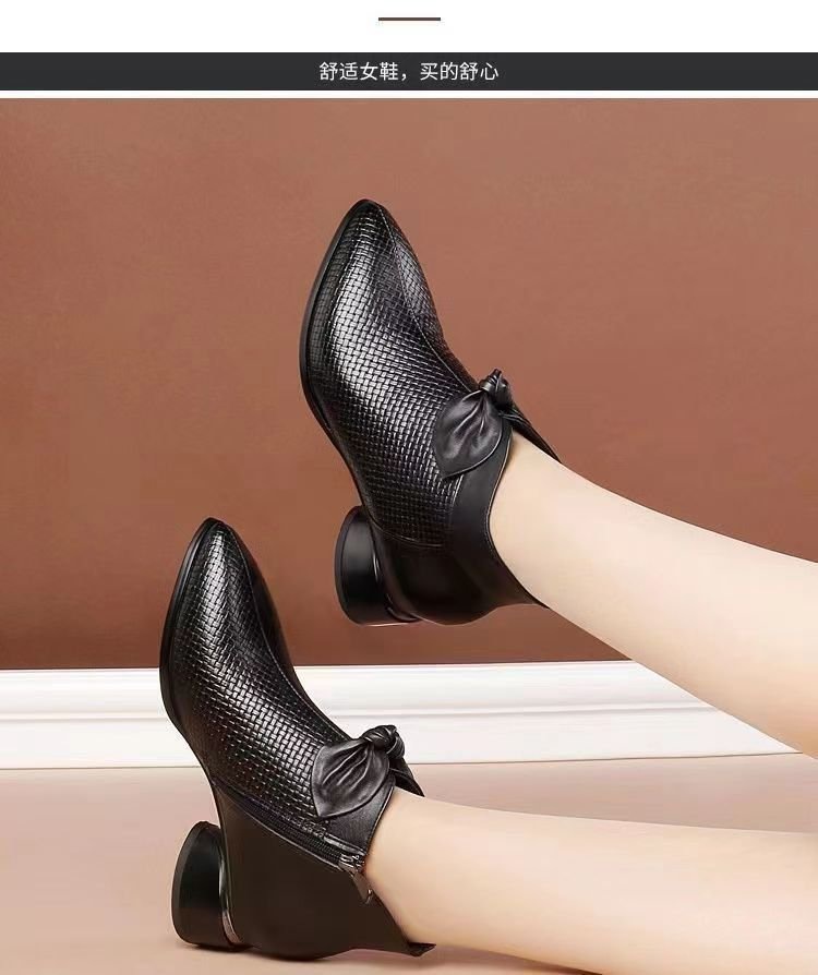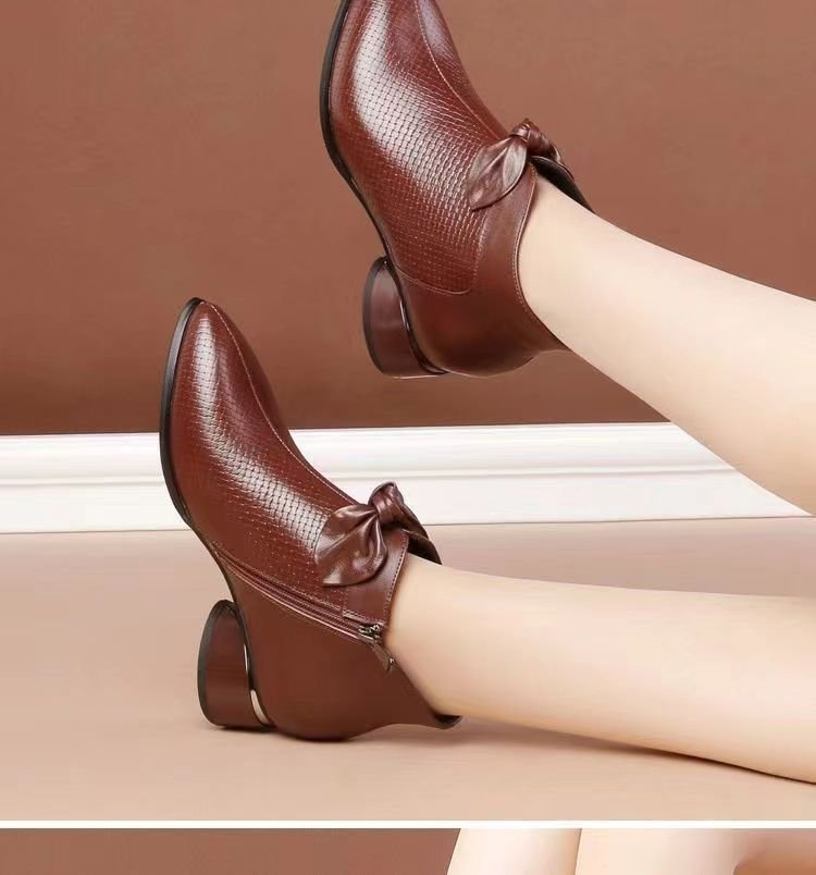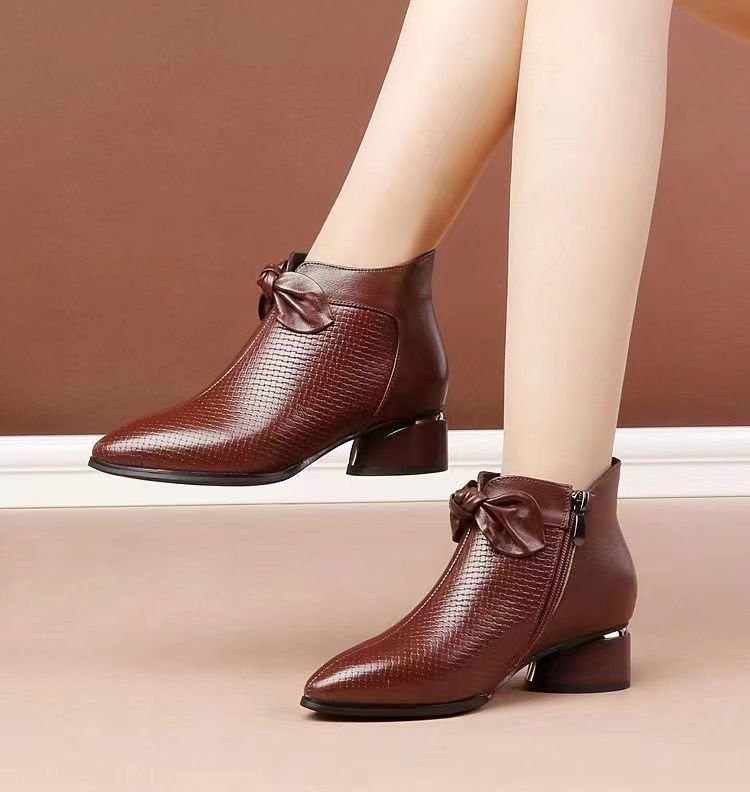 Womens Pointed-toe Chunky-heel Ankle Boots