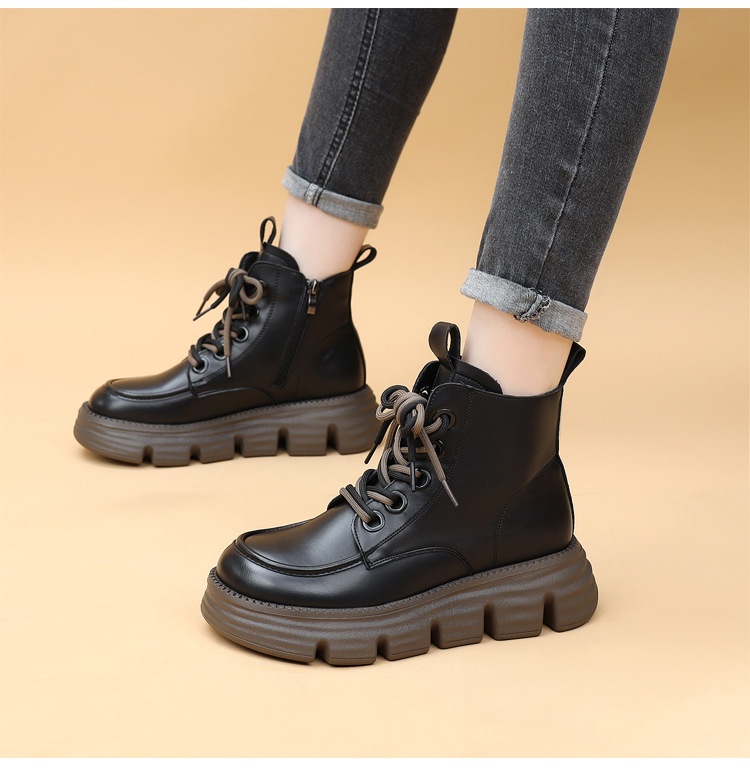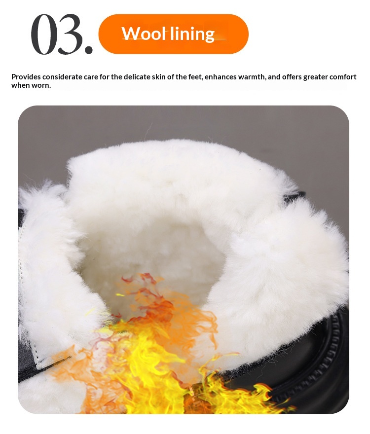 Womens Wool-lined Waterproof Thickened Leather Boots